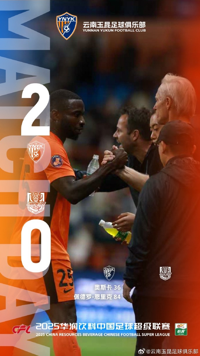 10月19日讯 凭借奥斯卡的点球和恩里克的头球,云南玉昆在主场以2-0击败津门虎,终结了联赛五轮不胜的记录。赛后,《足球报》发文点评表示,如果说客场1-0攻陷津门虎主场有些幸运成分的话,那么主场两球完胜津门虎完成双杀,充分体现了玉昆捍卫主场的意志力、保级成功后的求胜欲。